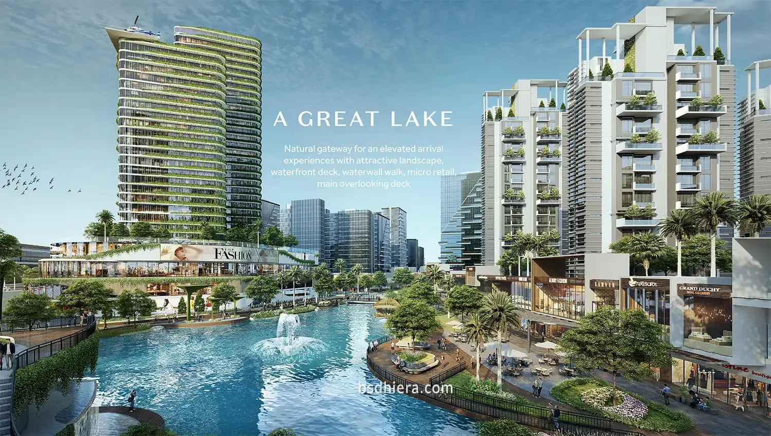 108 ha mixed use development Hiera BSD pada area pengembangan BSD City tahapan ke-3 akan memberikan citra baru di kota mandiri BSD City. Dapat melihat gambar bird-eye view kawasan pegembangan Hiera BSD mulai dari akses jalan masuk yang langsung disugguhkan view waterfront, area CBD dengan gedung bertingkat, residensial area perumahan dan lainnya.